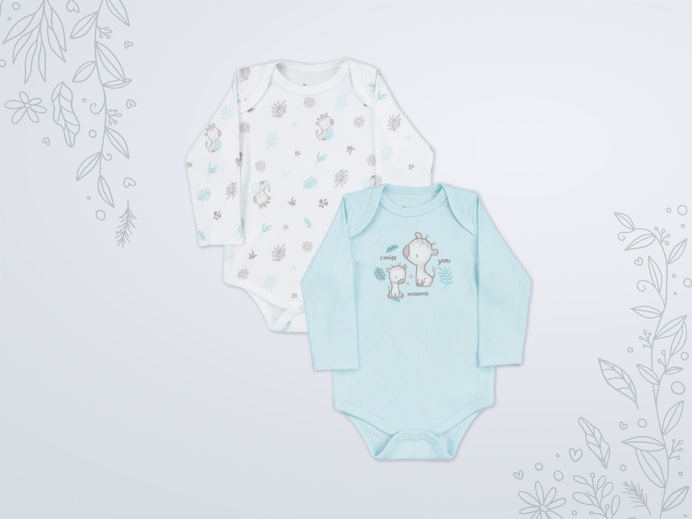 18760 turq 1 Babies Pack of 2 Giraffe Print Body Suits (3-18M) Babies Pack of 2 Giraffe Print...
