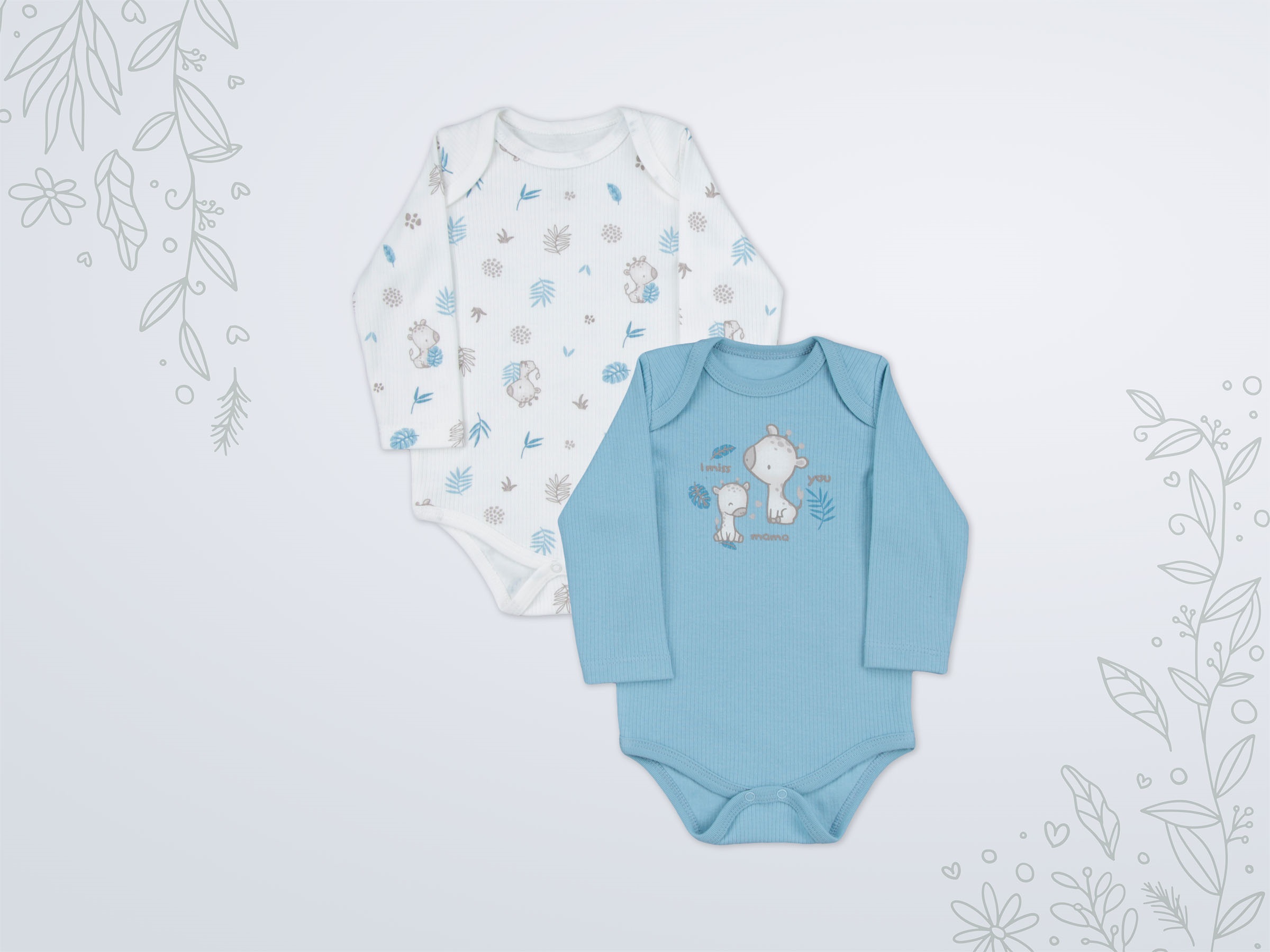 18760 BLUE2 Babies Pack of 2 Giraffe Print Body Suits (3-18M) Babies Pack of 2 Giraffe Print...