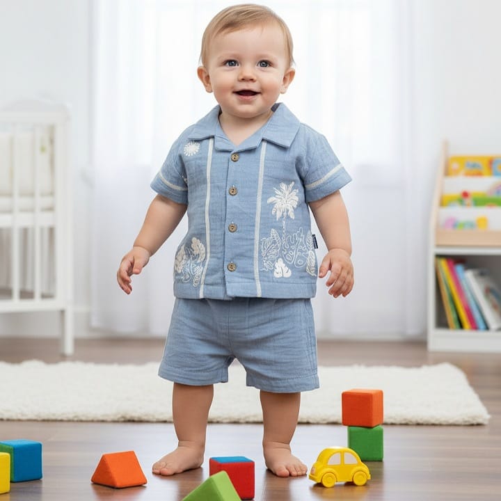 b1 blue Baby Boys Two Piece Safari Print Shirt & Shorts Set (6-24M) Baby Boys Two Piece Safari Pri...