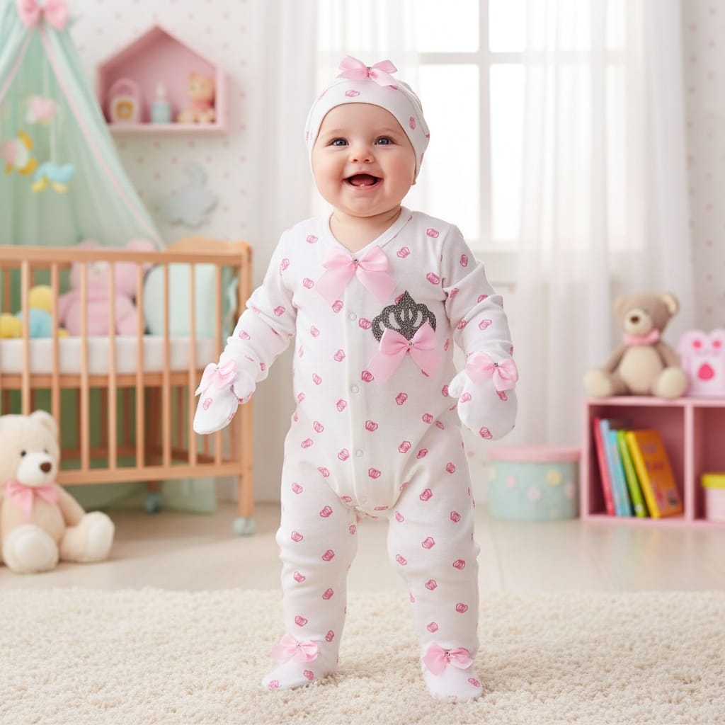 d crown pink Baby Girls Diamante Crown All in One Bow Baby Grow with Hat & Mittens (3-9M) Baby Girls Diamante Crown All ...