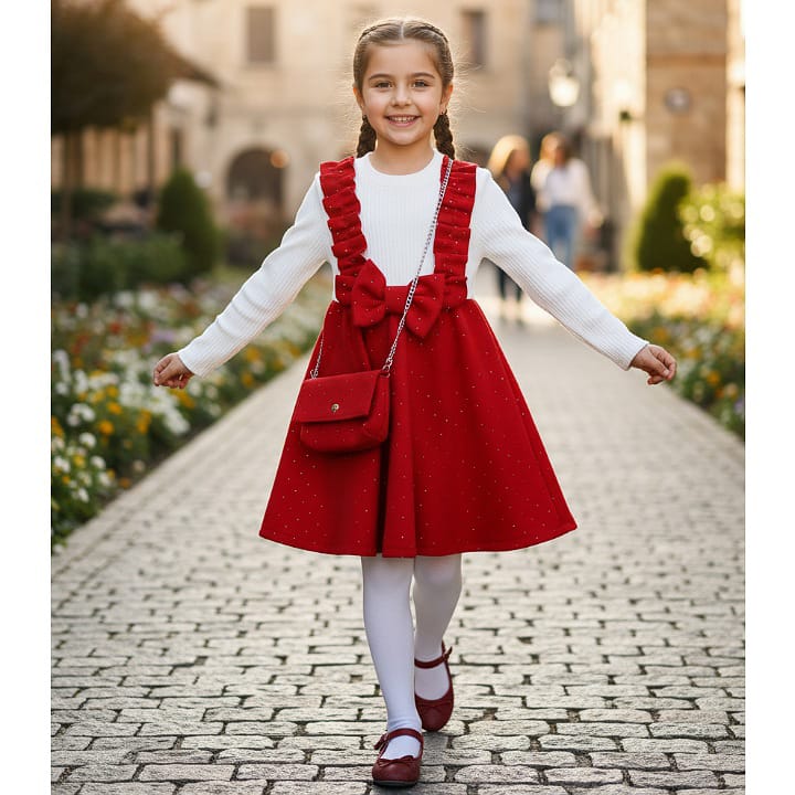 866 red 1 Baby Girls Full Sleeve Frilly Diamante Dress with Purse (6-36M) Baby Girls Full Sleeve Frilly ...
