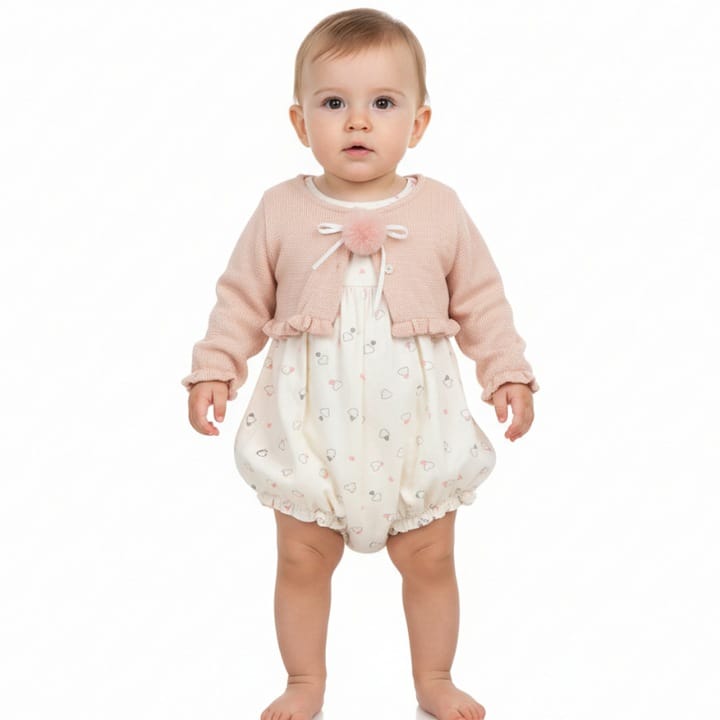 al9 Baby Girls Two Piece Heart Print Romper & Cardigan Set (3-12M) Baby Girls Two Piece Heart Pri...