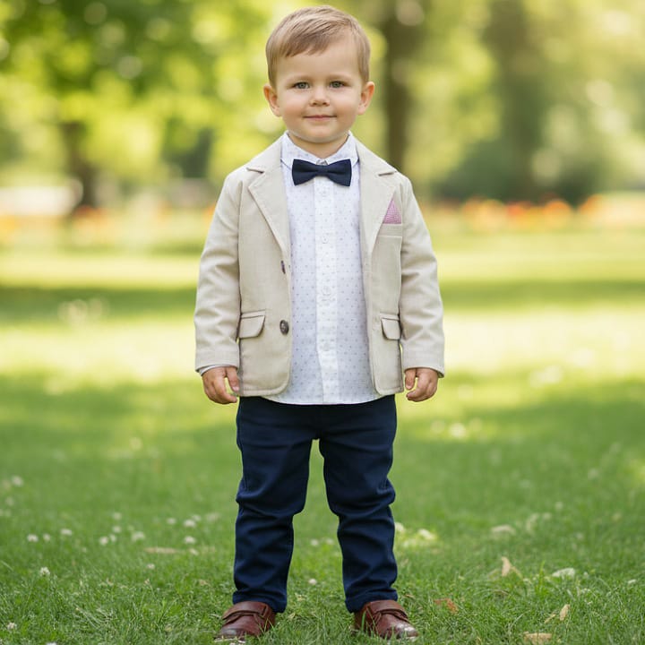 suit beige Boys Four Piece Shirt, Chinos & Jacket Set with Bow Tie (2-5Y) Boys Four Piece Shirt, Chinos ...