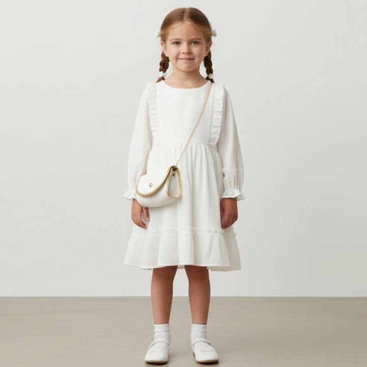5919 white Girls Crinkle Frilly Chiffon Belt Dress with Purse (2-5Y) Girls Crinkle Frilly Chiffon B...