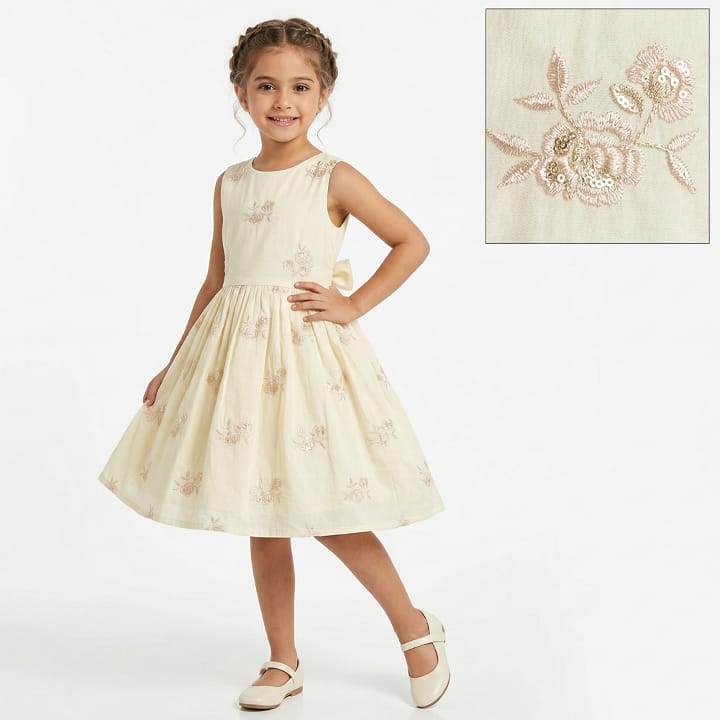 cotton 8 Girls Embroidered Rose Sequin Cotton Dress (2-7Y) Girls Embroidered Rose Sequin ...