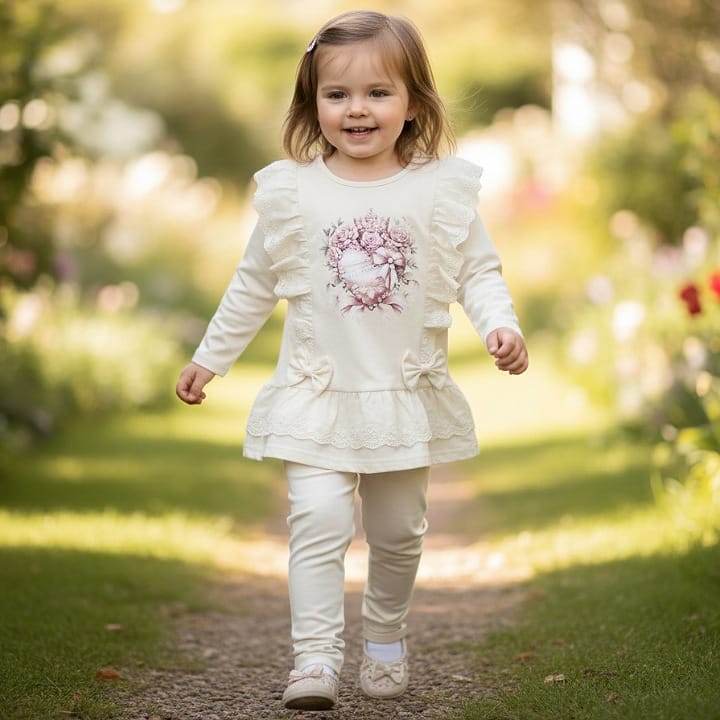 leg heart Girls Frilly Bow Heart Print Legging Set (1-8Y) Girls Frilly Bow Heart Print L...