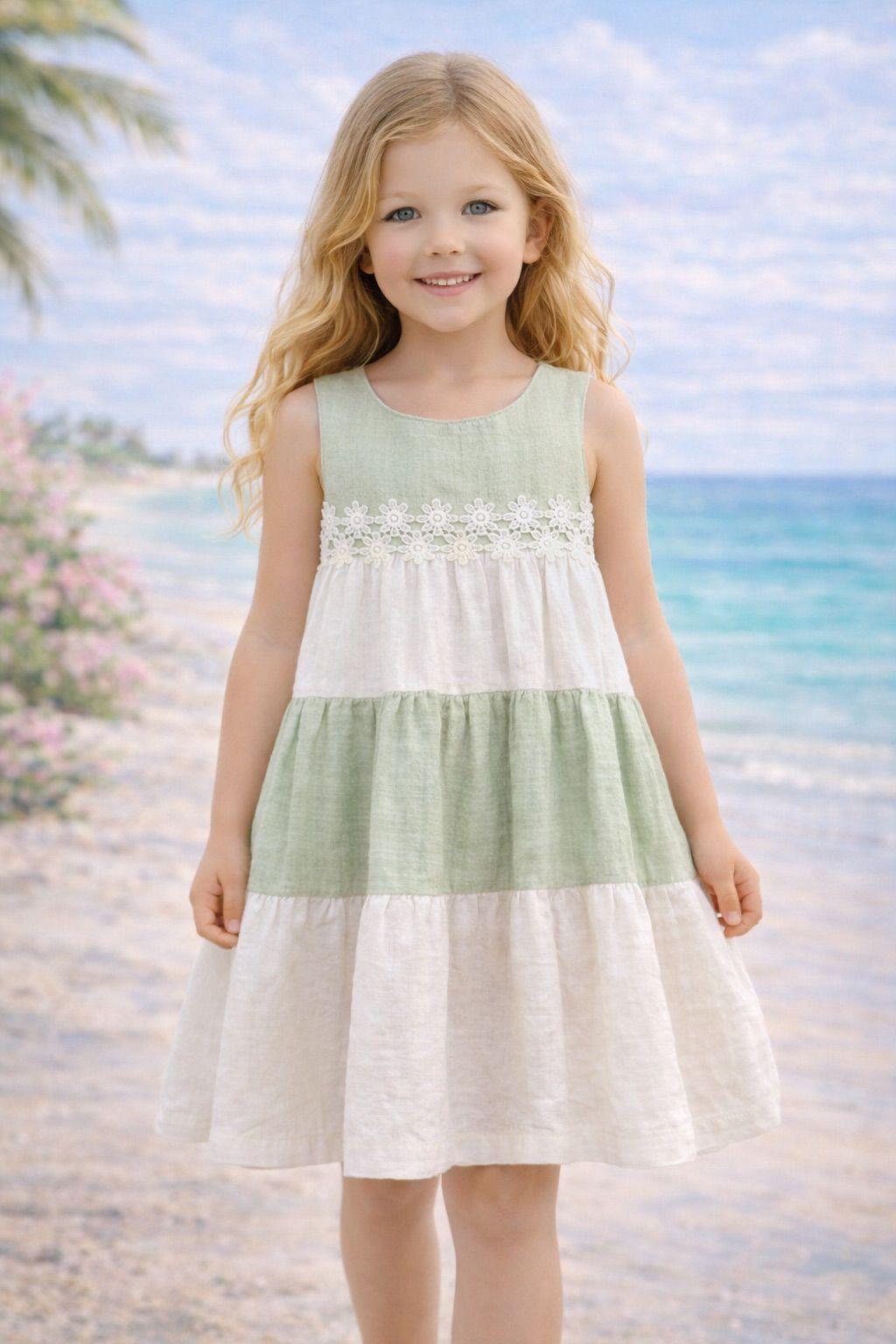 wizzy 2 green Girls Layered Panel Lace Trim Cotton Dress (2-9Y) Girls Layered Panel Lace Trim ...
