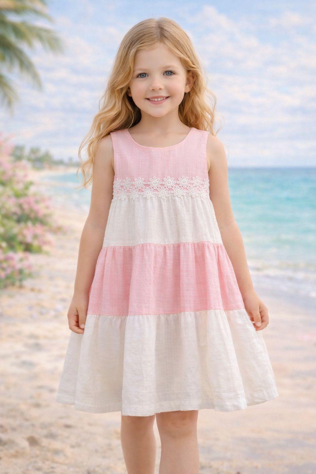 wizzy 2 peach Girls Layered Panel Lace Trim Cotton Dress (2-9Y) Girls Layered Panel Lace Trim ...