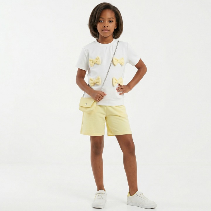 fr2 yellow Girls Multi Bow T-Shirt & Shorts Set with Purse (4-14Y) Girls Multi Bow T-Shirt & ...