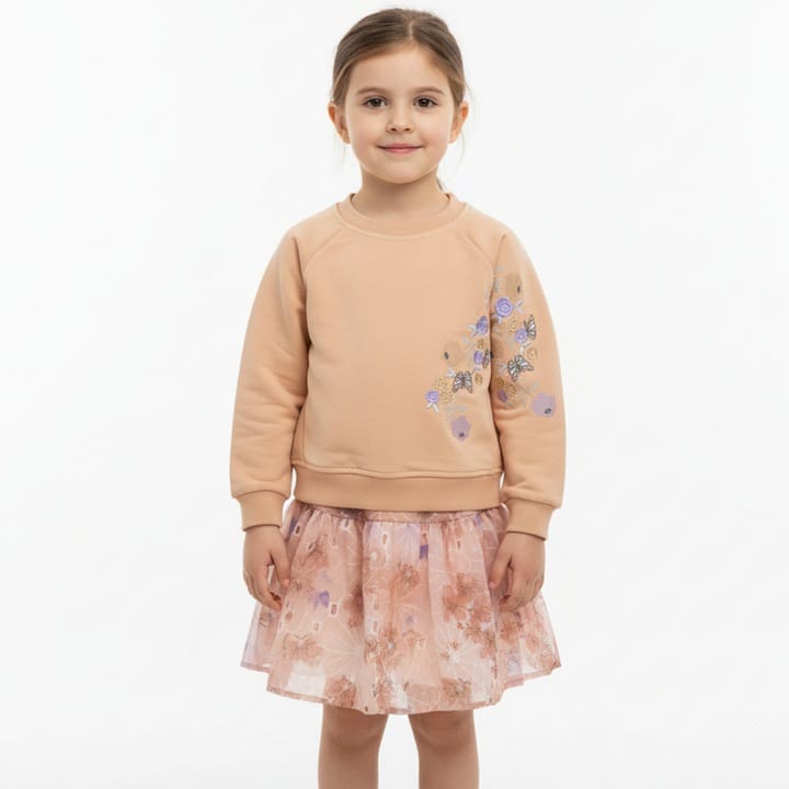 sug 3 Girls Two Piece Butterfly Floral Embroidered Top & Skirt Set (2-5Y) Girls Two Piece Butterfly Flor...