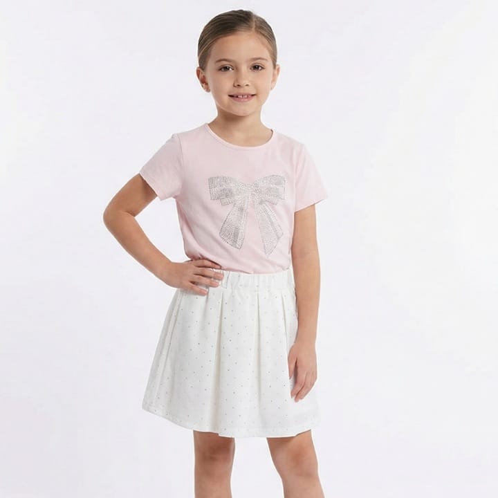 ch8 pink Girls Two Piece Diamante Bow Top & Diamante Skirt Set (4-12Y) Girls Two Piece Diamante Bow T...