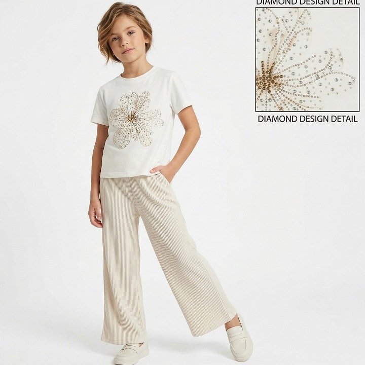 co2 gold Girls Two Piece Diamante Flower T-Shirt & Culottes Set (4-7Y) Girls Two Piece Diamante Flowe...