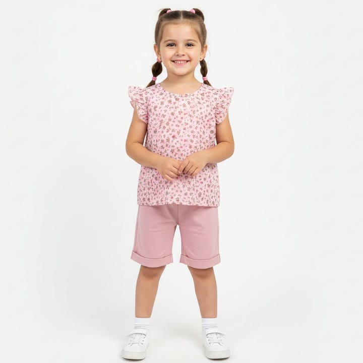 SH9 Girls Two Piece Floral Top & Shorts Set (2-5Y) Girls Two Piece Floral Top &am...