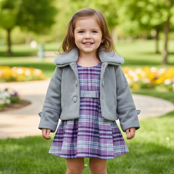 grey coat set Girls Two Piece Woolly Jacket & Tartan Dress Set (2-6Y) Girls Two Piece Woolly Jacket ...